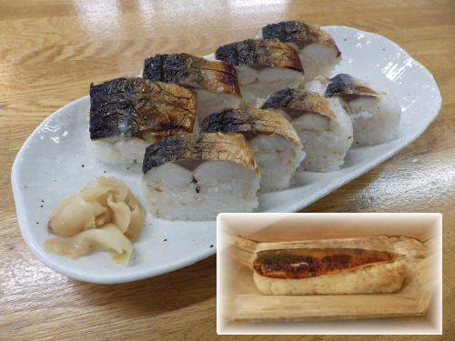 | ■鯖の一本寿し 〜 良質で肉厚の鯖を用いた当店の棒寿し |